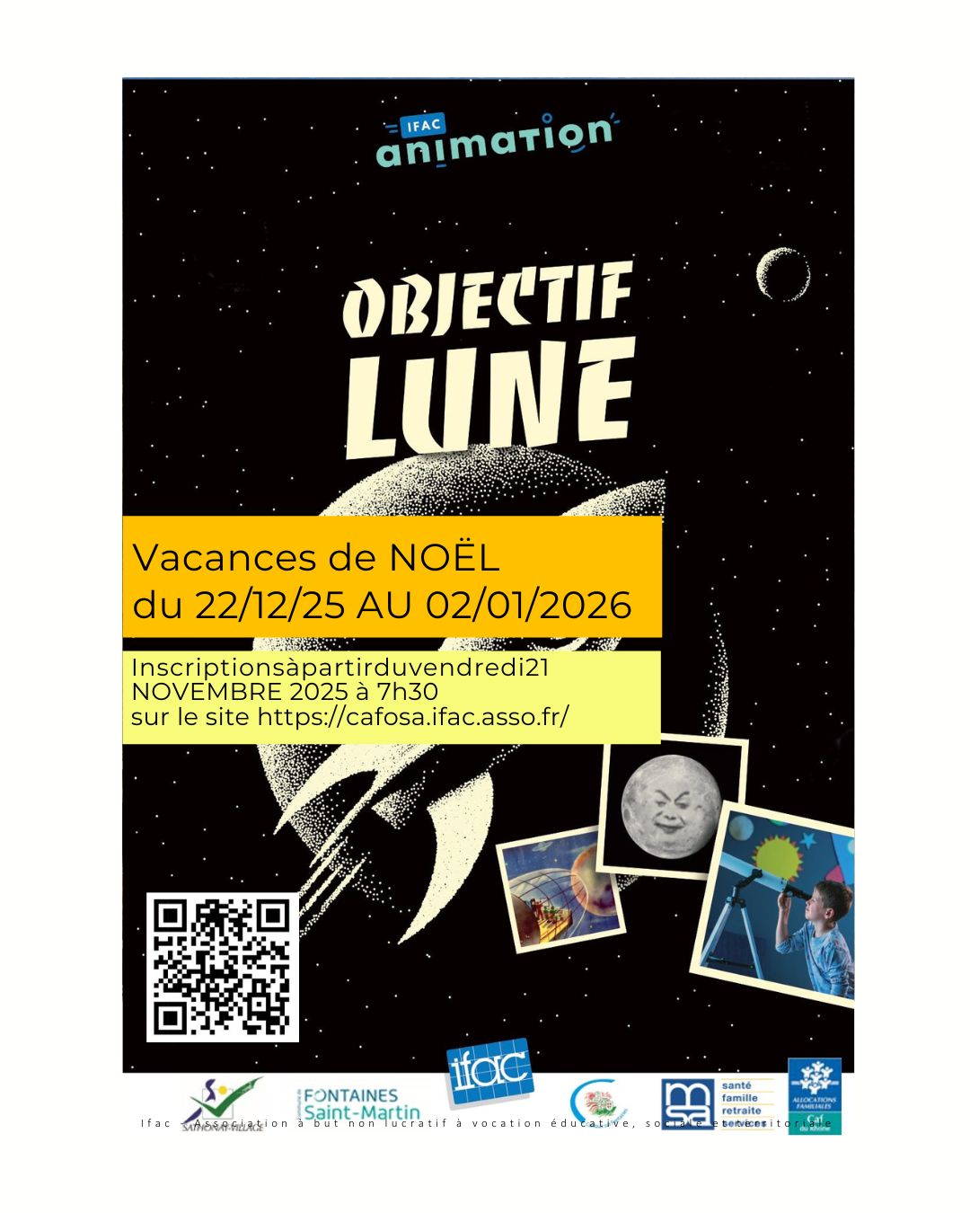 🌕✨ Cap sur la Lune avec le centre de loisirs IFAC ! 🚀 Les inscriptions pour les vacances de Noël sont ouvertes à partir du vendredi 21 novembre 2025 [...]