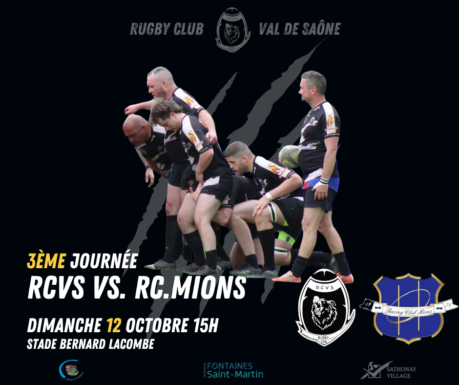 Dimanche 12 octobre, rendez-vous au stade Bernard Lacombe à Fontaines-Saint-Martin pour encourager l’équipe lors de la 3ème journée pour le match RCVS VS RC MIONS !