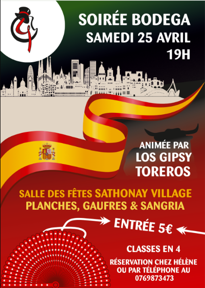 Les Classes en 4 vous donnent rendez-vous pour leur Soirée Bodega 📍 samedi 25 avril à partir de 19h, à la Salle des Fêtes de Sathonay-Village.